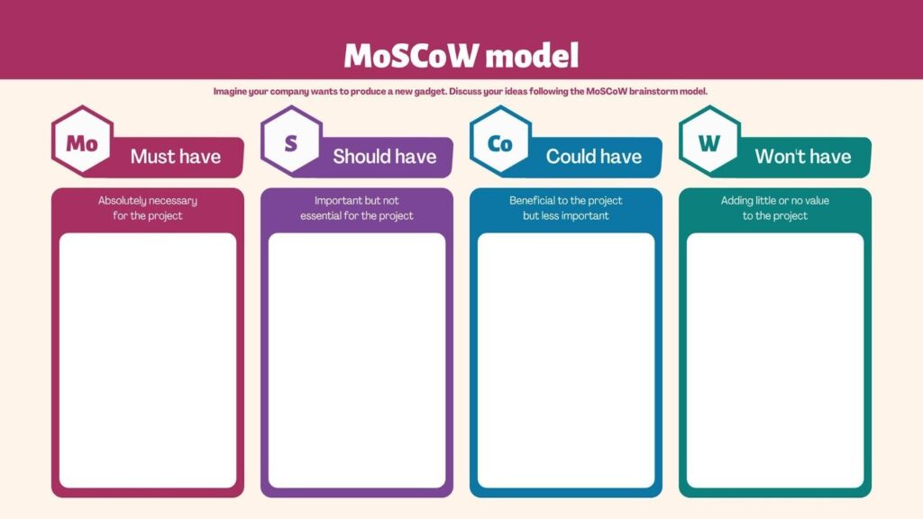 Not every condition carries the same significance. Use the MoSCoW framework to organize tasks: