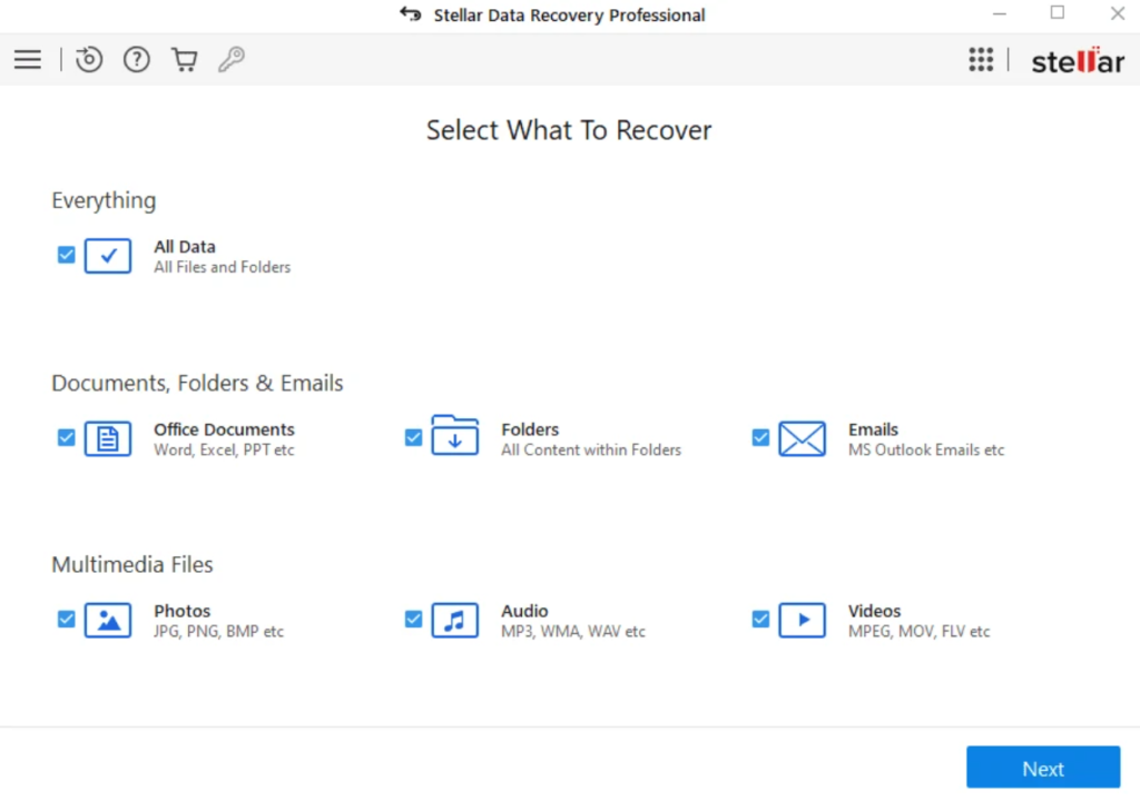 are praised by specialists. Stellar also makes excellent photo, video, drive monitoring, and phone recovery tools. Stellar lets you recover files after formatting, deletion, disc failures, and system crashes without stress.